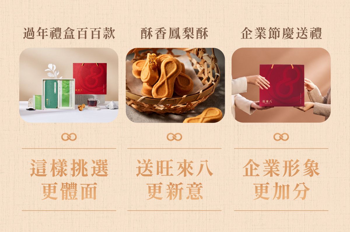 鳳梨酥|旺來八。首創8字形鳳梨酥-旺來好運發,企業送禮,中秋禮盒,過年禮盒,最能表達心意。