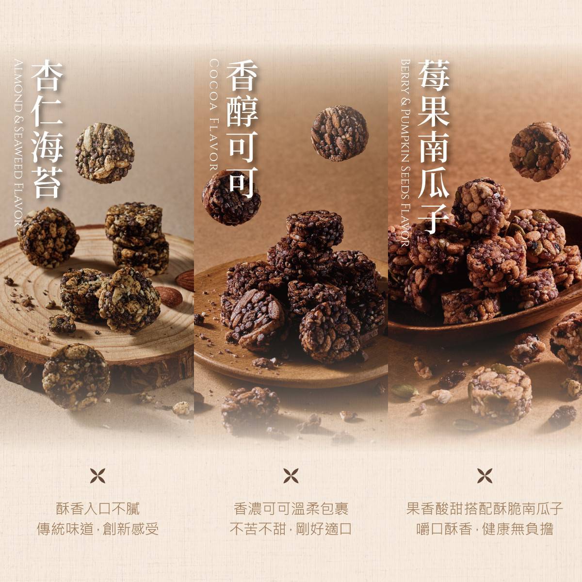 杏仁海苔x3+香醇可可x3+莓果南瓜子x2