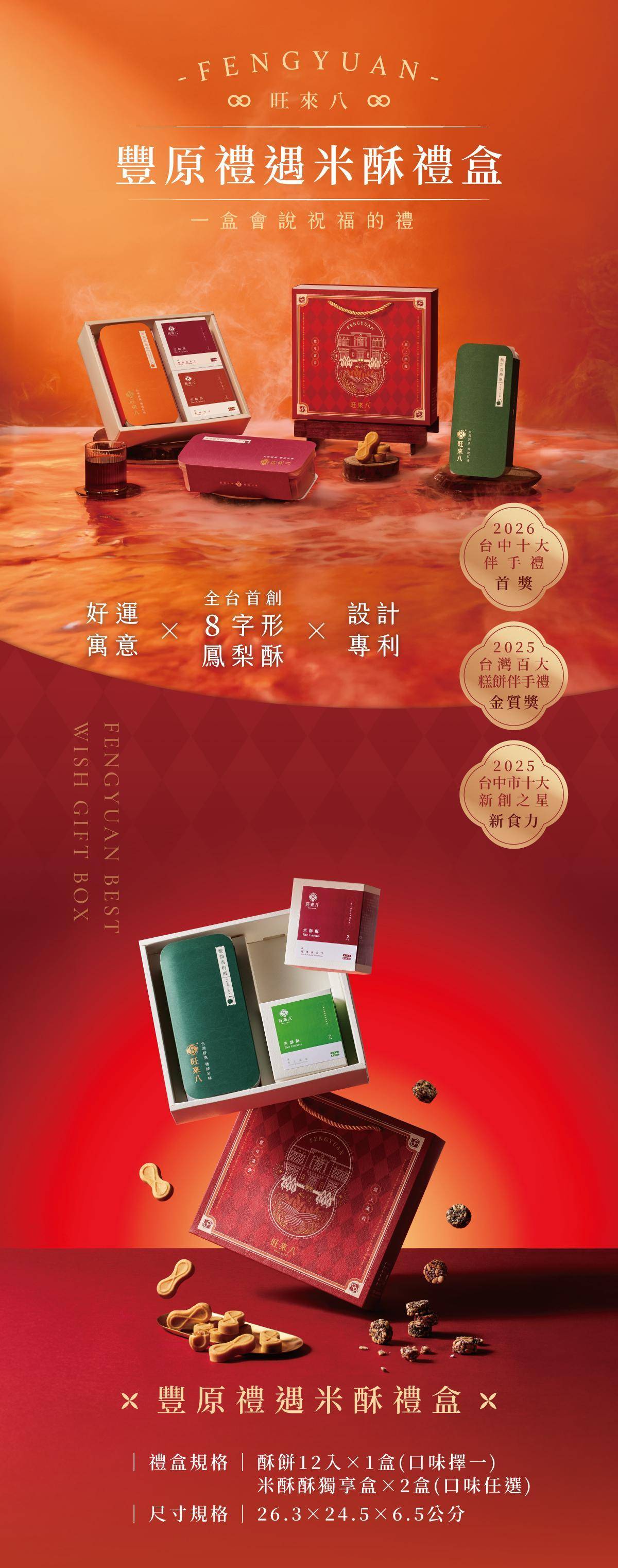 豐原禮遇米酥禮盒(酥餅12入x1+米酥獨享盒2入/盒x2),鳳梨酥|旺來八|首創8字形鳳梨酥-旺來好運發,過年禮盒,台中十大伴手禮-首獎,企業送禮,中秋禮盒